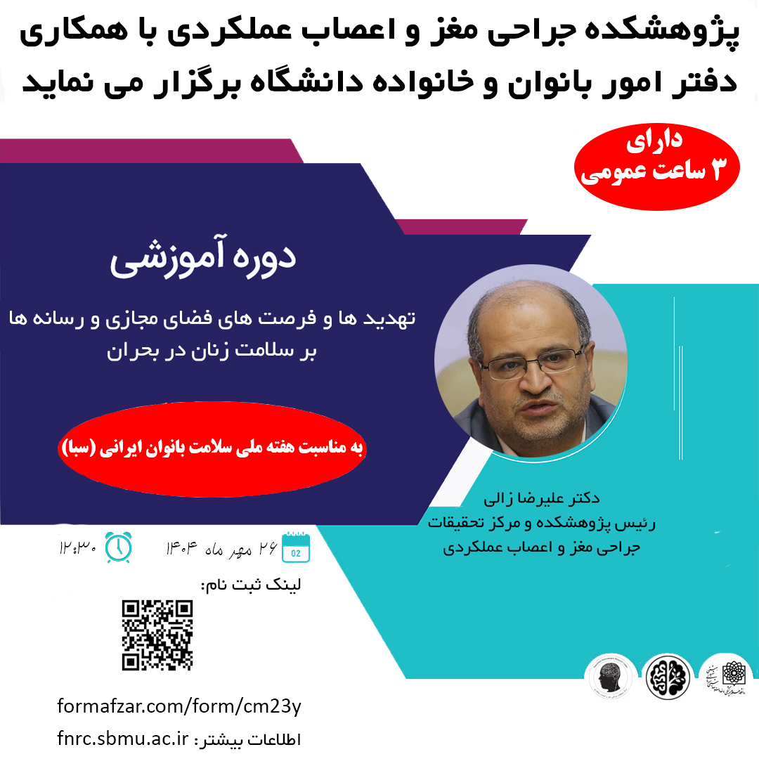 پژوهشکده و مرکز تحقیقات جراحی مغز و اعصاب عملکردی وبینار آموزشی "تهدید ها و فرصت های فضای مجازی و رسانه ها بر سلامت زنان در بحران" را برگزار می نماید.
